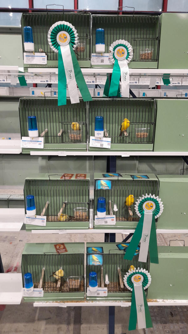 My target that morning was to see the London Canary Fancy for the first time at the world show after they were fully recognised by COM as a breed a month earlier in Belgium. After searching I found them and there were 8 birds only, with a team (stam) by the Dutch fancier Piet Renders who won the gold medal with a team of Schimmel (buff) and two individual classes. The class of intensive (yellow) was won by Eduardo Sáenz from Spain who won the gold medal followed by Piet Renders with a silver. The second class of Schimmel (buff) there was one bird only and the gold medal went to Eduardo Sáenz again. My intended target was completed.