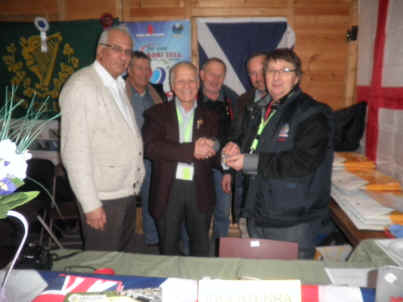 ![]() Medal winners Stan Bolton, Richard Lumley (COM-UK President), Brian Hogg & Ghalib Al-Nasser at COM-UK stand |