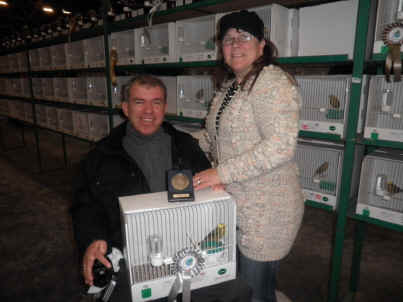 Chris Smith, vice president of COM-UK and chairman of the NCA, has attended many World shows in the past but it was his first time exhibiting. He said From my perspective it was another excellent show, over 23,000 exhibits, with birds of exceptional quality on display. Very happy with an increase in the number of exhibitors (34) and birds (170) from the UK team, although relatively small in numbers when compared to other countries and we brought home 9 medals. Heartiest congratulations are due to Ghalib Al Nasser, 2 golds and a silver and to Brian Hogg and Bernard Howlett for picking up a gold each. I am already looking forward to Bari, Italy in January 2014. Bernard Howlett won a gold with a Phaeo Green Finch which was a departure from his usual wins in the Thrushes. |