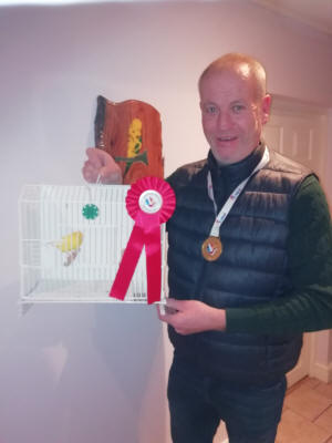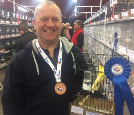 Roy was very pleased with his gold medal which he won for the same colour back at the 2015 show. This was Roy & Lucy’s first ever visit to the World Show and what a fabulous show he felt it to be. The budgerigars were of quality but not in number and this was his 4th time showing since 2011. He felt that more Brits should support this show as every show is a challenge. Willie McKay attends the show nearly every year and exhibits every year. He said that the birds are getting better every year he visits and on this occasion he entered 8 birds in the Fife Canary Fancy but sadly he missed out on a gold on this occasion with the highest he achieved being 91 points. He recalled his pleasure at the 2003 show in Amiens, France when he won gold in the Fife section and a silver and bronze in the stam section while Ernesto Gracia won the other 3 medals so it was a clean sweep for G.B. that year. In those days there were only 2 sets of medals in comparison to today’s 10 sets (5 for single & 5 for stam).